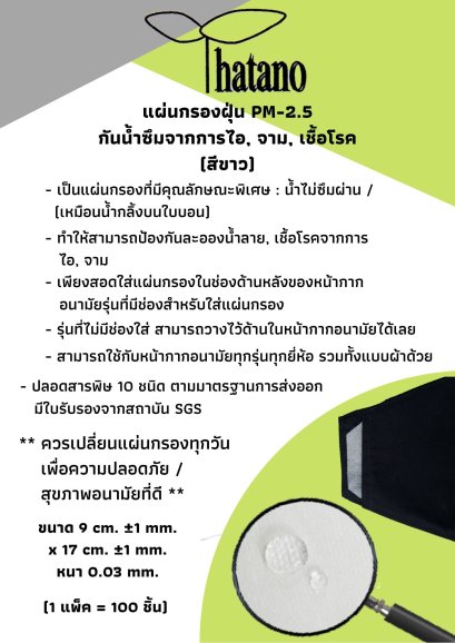 - สามารถใช้กับหน้ากากอนามัยทุกรุ่นทุกยี่ห้อ รวมทั้งแบบผ้าด้วย ใส่ไว้ด้านในหน้ากาก, ผ้าปิดจมูกหรือแบบสอดใส่ด้านหลังได้ เมื่อมีบุคคลภายนอกไอ จาม ใส่ผู้สวมใส่ น้ำจากการไอจาม ไม่สามารถเข้ามาได้เนื่องจากน้ำไม่ซึมผ่าน เวลาผู้สวมใส่ไอจาม ก็จะไม่ไปถูกบุคคลภายนอกเพราะกันน้ำซึม